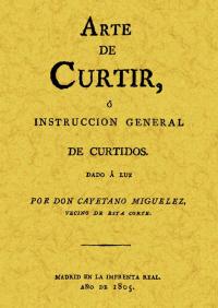 ARTE DE CURTIR O INSTRUCCION GENERAL DE CURTIDOS. Obra que tiene como objeto el extractar de obras extranjeras cuantas noticias sean útiles para curtir las diferentes clases de pieles y donde se dan trucos sobre los materiales, máquinas y herramientas que han de emplearse en el curtido de pieles.