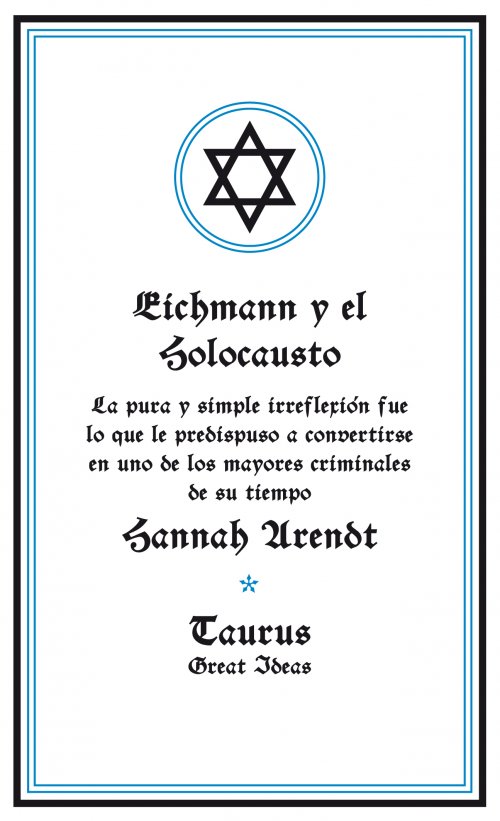 EICHMANN Y EL HOLOCAUSTO Taurus Great Ideas. Inspirada por el juicio a un burócrata que contribuyó a provocar el Holocausto, esta obra fundamental sobre la banalidad del mal asombró al mundo con su análisis de la ceguera moral de un régimen y de la insistencia de un hombre en ser absuelto de toda culpa porque sólo cumplía órdenes .