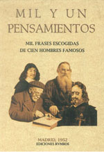 Estos mil y un pensamientos son mil y una frases de autores célebres referidas a multitud de temas.